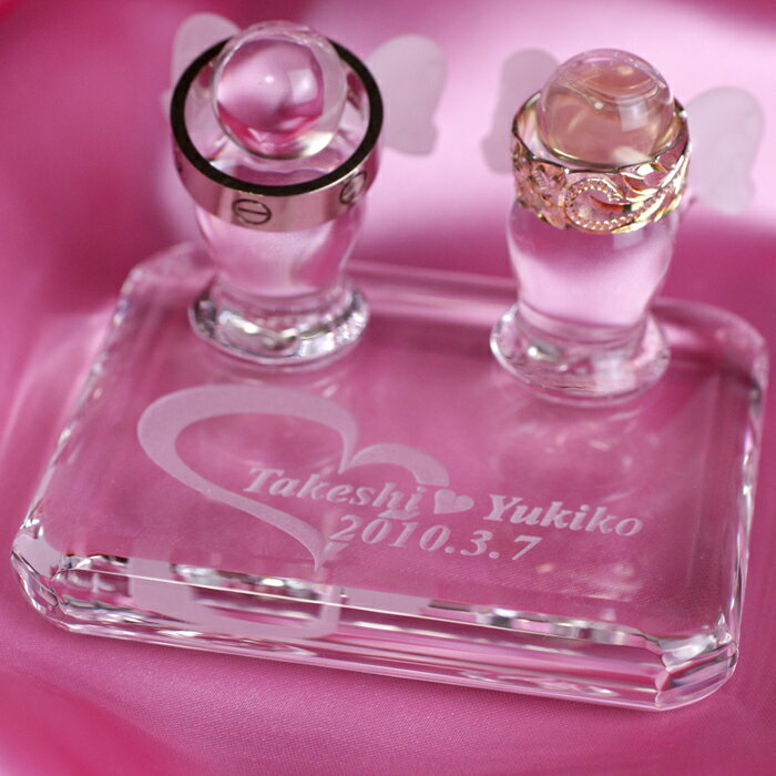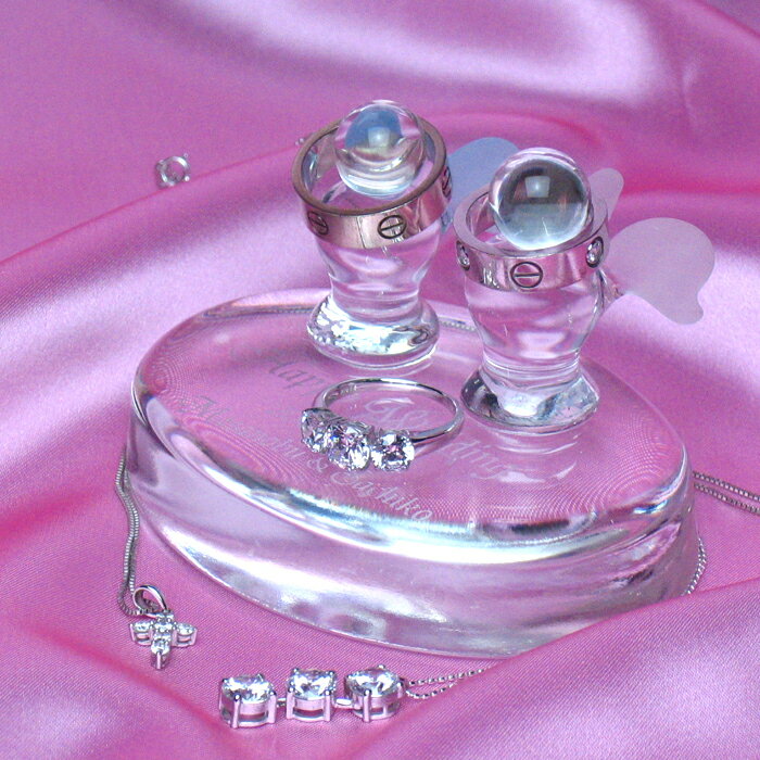 結婚指輪をかけます。ギフトにも最適!!ご結婚のお祝いに!!【ギフト】【ブライダル】【贈り物】【特価】【送料無料】ハートのリングピロー【10P17may10】【送料無料0517_kaimawari】【ポ 価格: 4,980円 レビュー評価:5.0 レビュー数:1 ■サイズ:60×85×H50(mm)■カラー ハート台:クリア 天使:クリア■オーダーメイド商品です。★ラッピングは無料です。 メッセージカードも無料でおつけします。★オリジナルギフト、プレゼントに最適です!!ハートの透明ガラスの台に2体のかわいい天使が乗ったリングピローです。天使は一体一体ハンドメイドで作られており、まさにあなただけのオンリーワンの商品です。ご結婚の記念に、結婚記念日や誕生日などのメモリアルとして、また、お気に入りのリングのスタンドとしてお使いいただけます。☆メッセージ、名前、日付、模様などを彫刻することで、さらにあなただけのオンリーワンのリングピローになります。【送料無料】 Supported by 楽天ウェブサービス |